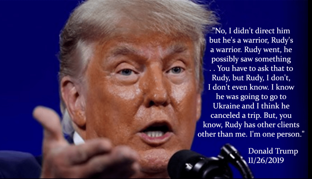 Dec. 6, 2018 — At the White House annual Hannukah party, Parnas and Fruman hold a private meeting with President Trump and Giuliani, where Trump tasks Parnas and Fruman to pressure the Ukrainian government to investigate the Bidens, according to associates Parnas told around the time and in the ensuing days, according to CNN.