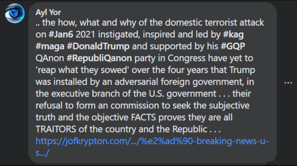 5/19/2021 – 4:10 pm (PDT) The House just voted to hold a commission in the investigation of the January 6 domestic terrorist insurrection upon the U.S. Capitol that was inspired, instigated and instructed by Donald J. Trump who said, “I’ll be there with you . . .” prior to attack.