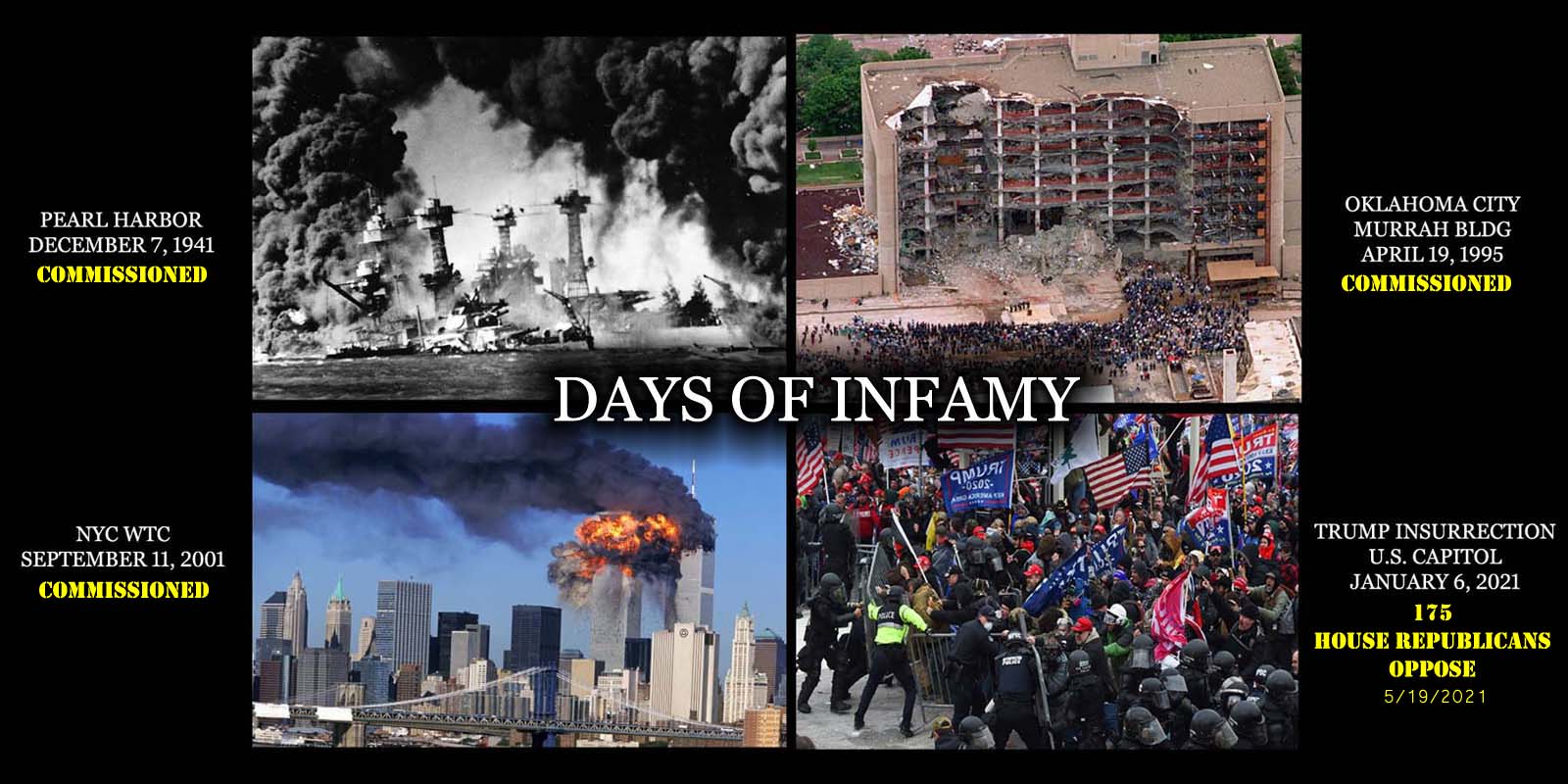 5/19/2021 – 4:10 pm (PDT) The House just voted to hold a commission in the investigation of the January 6 domestic terrorist insurrection upon the U.S. Capitol that was inspired, instigated and instructed by Donald J. Trump who said, “I’ll be there with you . . .” prior to attack.